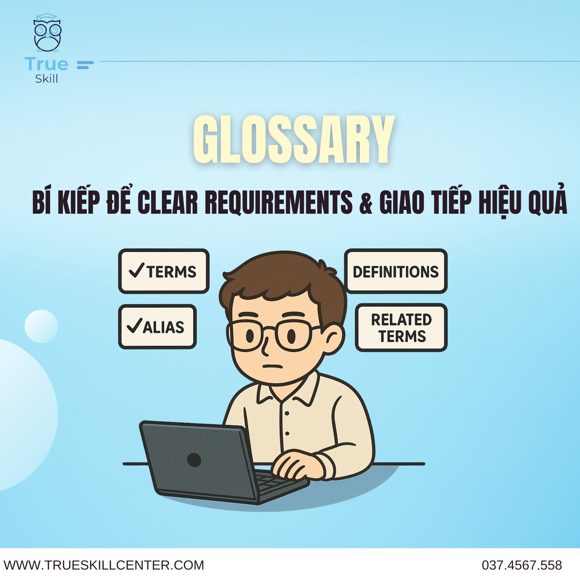 Một Glossary (Bảng thuật ngữ) là tài liệu ghi lại các thuật ngữ, từ viết tắt, cụm từ mang tính đặc thù của một lĩnh vực kinh doanh hoặc kỹ thuật. Glossary giúp đảm bảo rằng tất cả các bên liên quan (cả business và technical) đều hiểu đúng ý nghĩa của các thuật ngữ được sử dụng trong tổ chức.